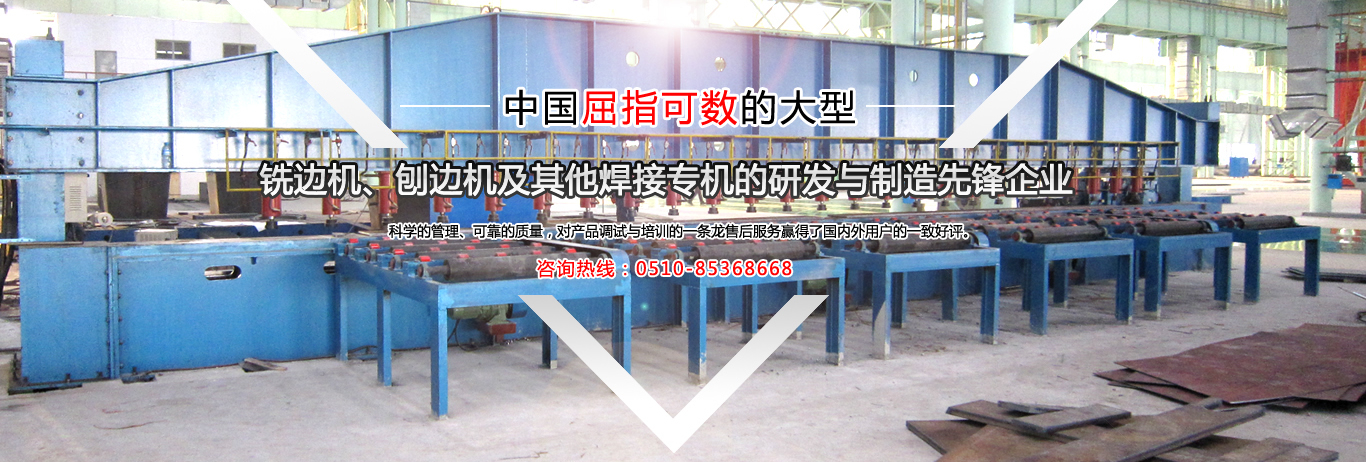 公司是中國金屬銑削切割自動焊接工藝的搖籃,公司是國內制造有壓梁、無壓梁銑邊機、刨邊機及其他焊接專機的專業(yè)廠家。取得國家專利局頒發(fā)的最新銑、刨邊機產品專利證書。通過了ISO9001.2000國際質量體系認證,并獲得了“全國用戶滿意產品”、“江蘇省質量信得過AAA級品牌企業(yè)”的榮譽稱號。銷售網絡遍布全國,部分產品出口東南亞及歐美等國家。公司本著:質量為首,用戶至上,信譽為本...     【詳細】